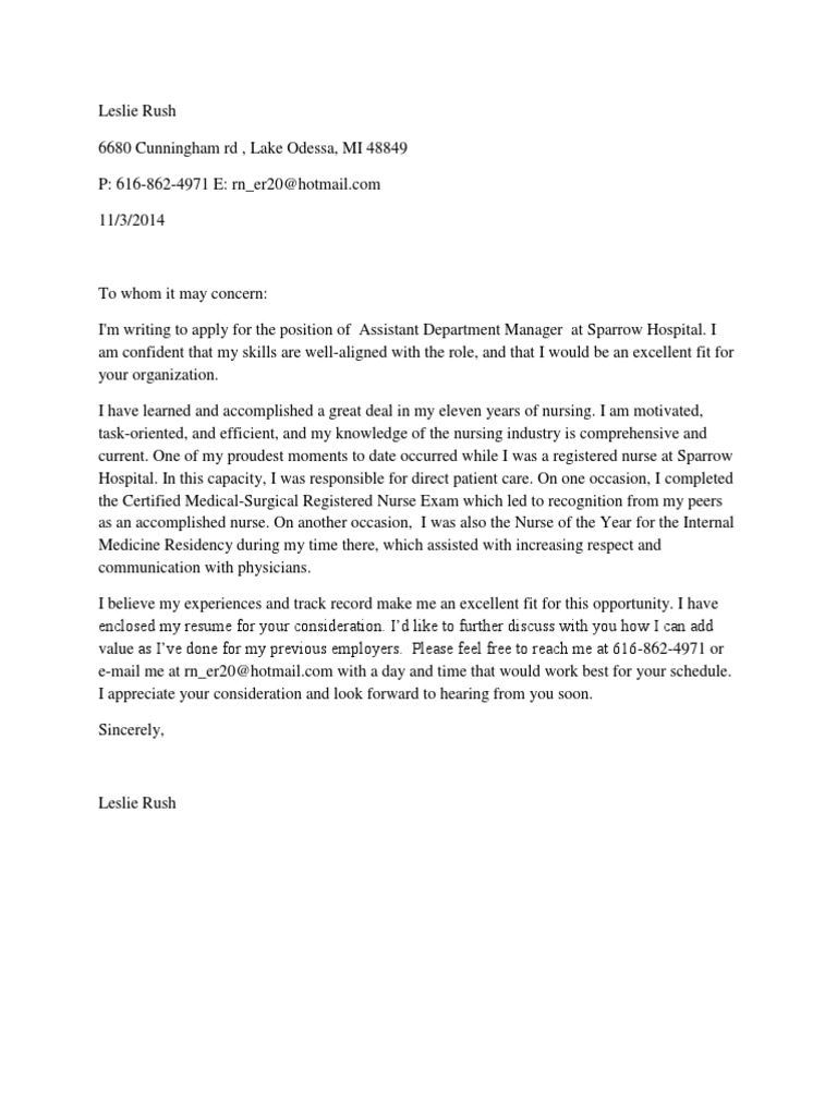 How to write a cover letter for a nurse manager? cover letter example nurse. I continued my education and received my b.s.
